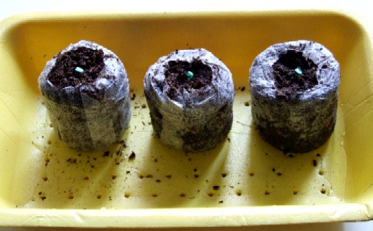 Do otvoru uprostřed sadbovače vložíme jedno semínko. Do vlhkého substrátu sadbovače ho jen lehce vtiskneme. Osetý sadbovač necháme v teple.