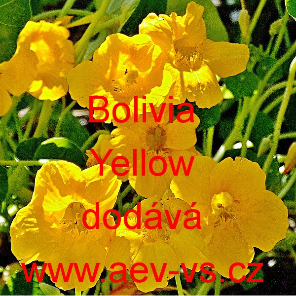 Popis: Lichořeřišnice větší (Tropaeolum majus) Bolivia Yellow žlutá je asi 25 centimetrů vysoká jednoletka. Je to výborná léčivá rostlina, pomáhá při zánětech horních cest dýchacích, chronických zánětech plic a také při akutních a chronických zánětech močových cest vyvolaných infekcí. Neškodí střevním bakteriím ani je nepotlačuje, nepoškozuje ledviny. Pravidelné užívání zřetelně zvyšuje odolnost proti katarům horních cest dýchacích a dalším infekčním nemocem, zvyšuje chuť k jídlu a podporuje trávení.