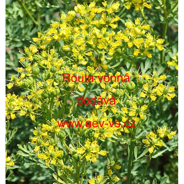 Popis: Routa vonná (Ruta graveolens) je asi 60 centimetrů vysoká trvalka. Od pradávna se používá k ošetření očí po zrakové námaze. Blahodárně působí i proti bolestem hlavy způsobených nervovou zátěží, snižuje krevní tlak, zpevňuje cévy, kosti a zuby. Pomáhá při klimakterických a sklerotických potížích, je i prevencí proti mozkové mrtvici. Zabraňuje krvácení, snižuje vysoký krevní tlak, atd. Nesmí se používat v těhotenství. Routa vonná se používá i jako zelenina a koření. Jemně nasekané mladé lístky jsou výborné na chléb s máslem, do vaječných, tvarohových či sýrových jídel, na zvěřinu, do salátů, na ryby, tučná jídla, atd.