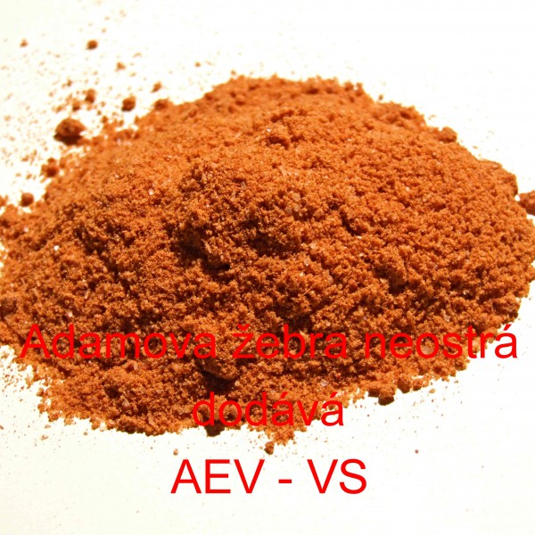 Popis: Adamova žebra neostrá, obsahuje: asi 41% jedlé kuchyňské soli, papriku, zázvor, česnek, cukr, medového aróma, kurkumu, dextrózu, rostlinný olej (řepkový), zvýrazňovač chuti E 621, protispékavou látku E341iii