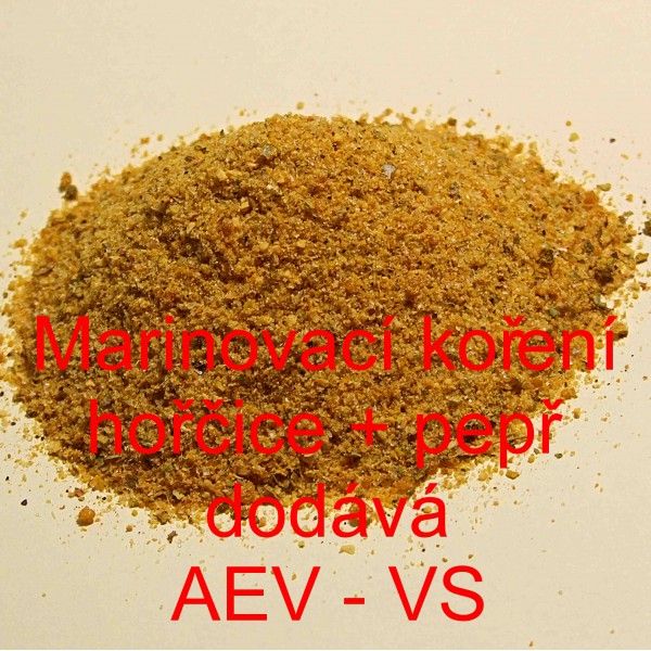 Popis: Marinovací koření, obsahuje: asi 42% jedlé kuchyňské soli, hořčici, cukr, česnek, cibuli, koriandr, kurkumu, pepř, majoránku, zázvor, maltodextrin, regulátor kyselosti E262, zvýrazňovač chuti E621