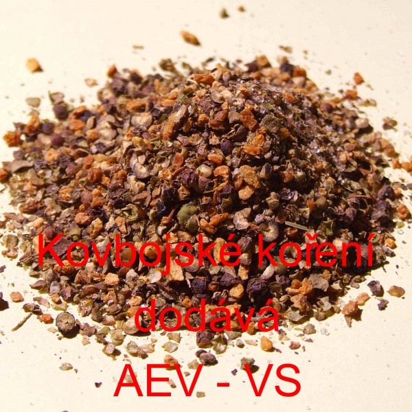 Popis: Kovbojské koření s vůní udírny, obsahuje: cca 29% jedlé kuchyňské soli, pepř, citronovou kůru, cukr, majoránku, papriku, rostlinný olej (řepkový), kouřové aroma, barvivo E150c, zvýrazňovač chuti E621