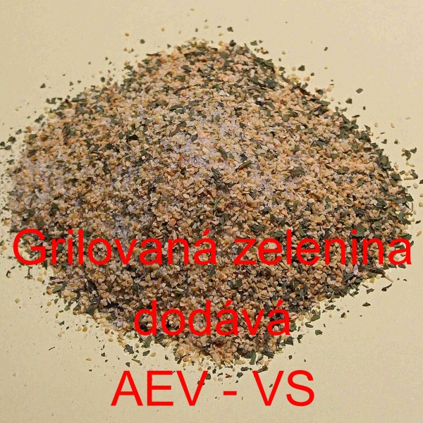 Popis: Grilovaná zelenina, obsahuje: asi 50% jedlé kuchyňské soli, česnek, celer