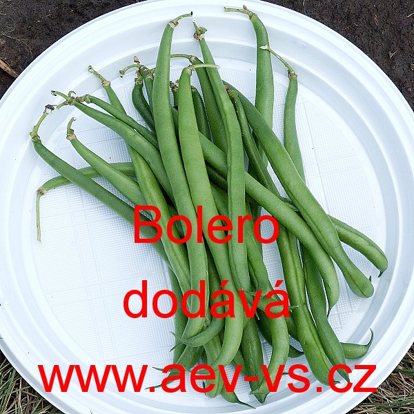 Popis: Fazol keříčkový (Phaseolus vulgaris var. nanus) Bolero je poloraný bezvláknitý zelenoluský keříčkový fazol. Vytváří kruhovité asi 12 centimetrů dlouhé šťavnaté lusky a bílá semena.