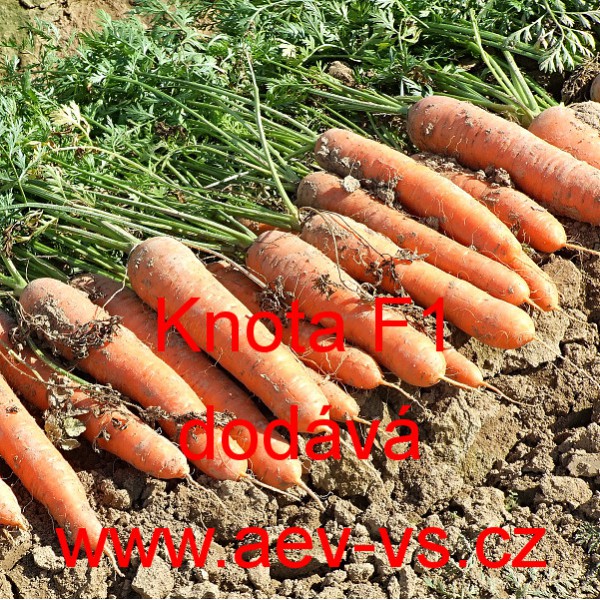Popis: Mrkev obecná (Daucus carota ssp. Sativus) Knota F1 je poloraná hybridní mrkev obecná. Vytváří válcovité asi 18 až 20 centimetrů dlouhé tupě ukončené praskání odolné kořeny. Hlava kořene nezelená.