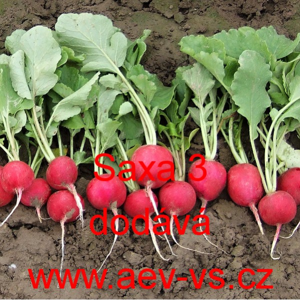 Popis: Ředkvička (Raphanus sativus var. sativus) Saxa 3 je velmi raná červená kulovitá ředkvička vhodná k rychlení ve skleníku, fóliovníku, pařeništi i pro přímý výsev na záhon. Odolává korkovatění, vybíhání do květu a dutosti dužniny.