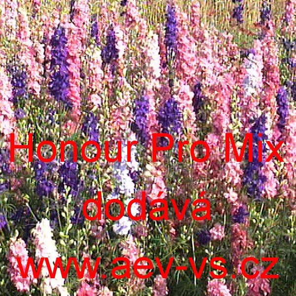 Popis: Ostrožka stračka (Consolida regalis) Honour Pro Mix je asi 90 centimetrů vysoká plnokvětá velice dekorativní výběrová směs jednoletých květin s pevnými stonky. Obsahuje barvy: bílou, růžovou, šeříkovou, karmínovou, světle modrou, tmavě modrou, modrofialovou, atd., v odstínech. Sáček semen nemusí obsahovat všechny barevné variety. Hodí se do vázy, k řezu. Dá se i usušit a použít do suchých vazeb. Ani po usušení nestrácejí okvětní lístky intenzivní barvy.