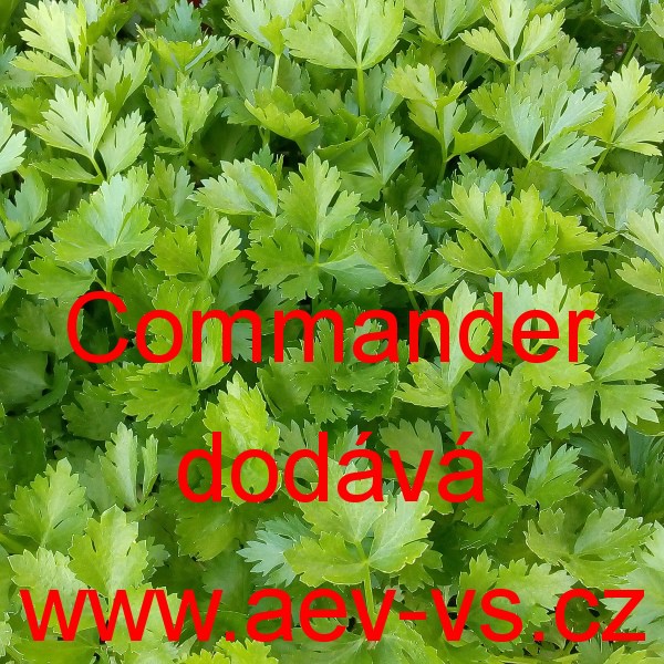 Koriandr setý (Coriandrum sativum) Commander je širokolistý zelený výjimečně příjemně aromatický naťový koriandr setý na záhon, do skleníku i většího květináče.