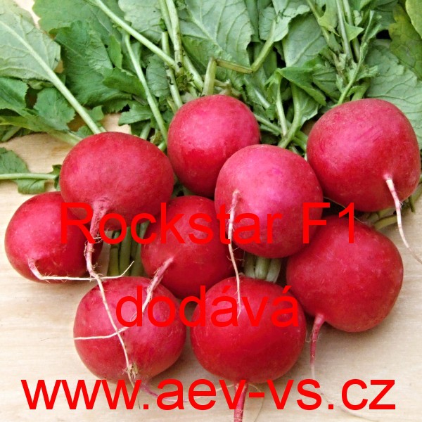 Ředkvička (Raphanus sativus var. sativus) Rockstar F1 je raná celoroční chorobám odolná červená kulovitá v průměru asi 3 centimetrová hybridní ředkvička na záhon.