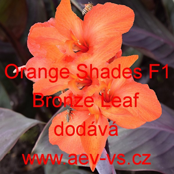 Dosna zahradní, kanna (Canna x generalis) Orange Shades F1 Bronze Leaf je vyšší oranžová velkokvětá květina s bronzovými listy. Bez problémů snáší teploty od cca 5 do cca 35 stupňů Celsia. Je velice vhodná na záhony, do větších truhlíků, květináčů a okrasných koryt na balkony a terasy. Můžeme ji využít i jako nádhernou solitéru.