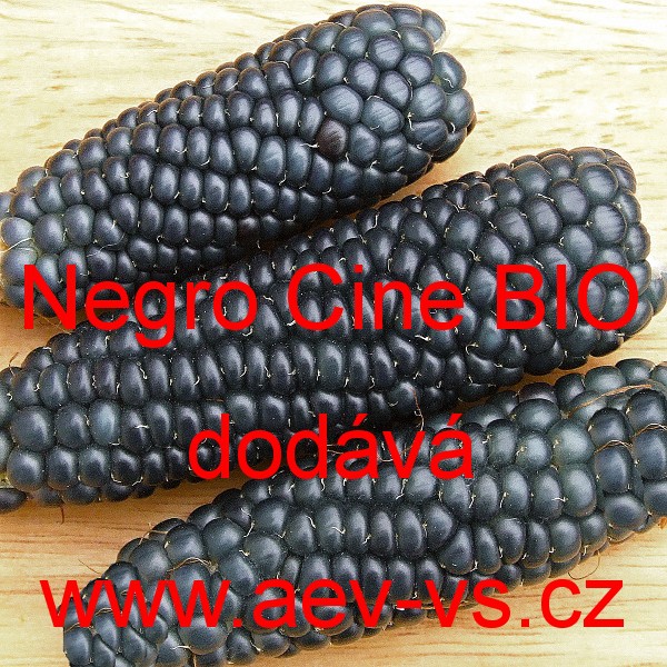 Kukuřice pukancová (Zea mays L.) Negro Cine BIO je poloraná hybridní pukancová kukuřice, vhodná i do velkých truhlíků a květináčů. Vytváří asi 90 až 120 centimetrů vysoké rostliny a asi 10 centimetrové klasy s tmavě modrofialovými až šedočernými uvnitř sněhově bílými semeny.
