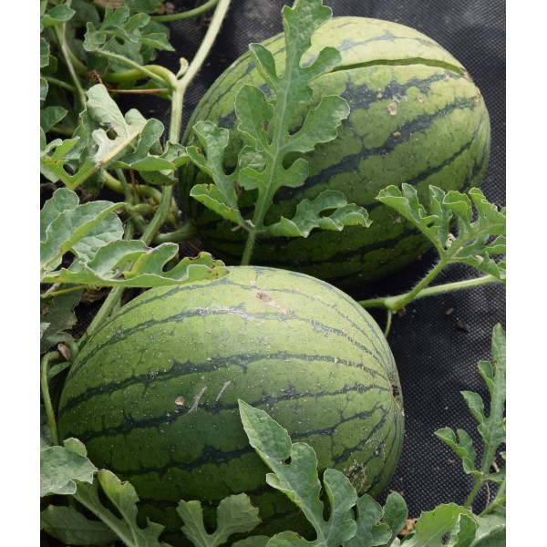 Meloun vodní červený (Citrullus lanatus) Lusitana F1 je velmi raný hybridní vodní meloun typ Crimson Sweet.