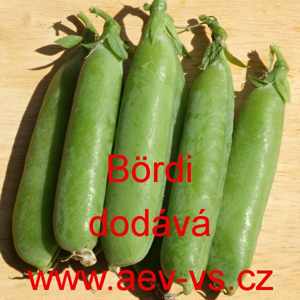 Popis: Hrách setý dřeňový (Pisum sativum L.) Bördi je poloraný asi 60 centimetrů vysoký příjemně sladký zelenoluský dřeňový hrách setý.
