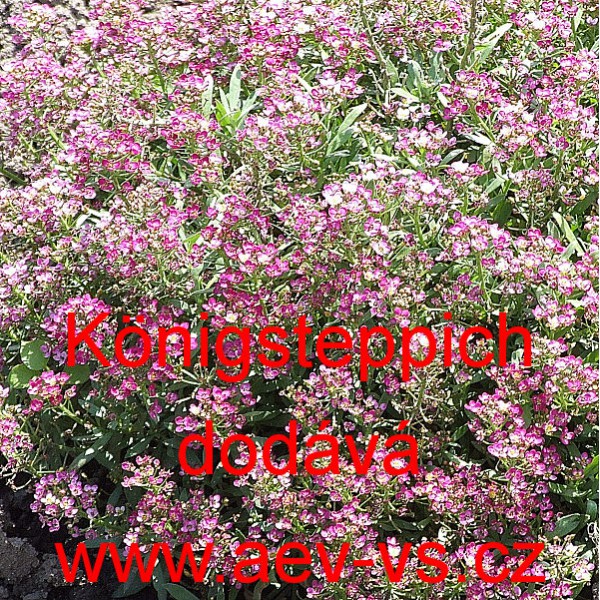 Popis: Tařice přímořská, laločnice (Alyssum maritima) Königsteppich je asi 10 centimetrů vysoká růžová velkokvětá jednoletá květina. Hodí se na záhon, do truhlíku, květináče a okrasného koryta.
