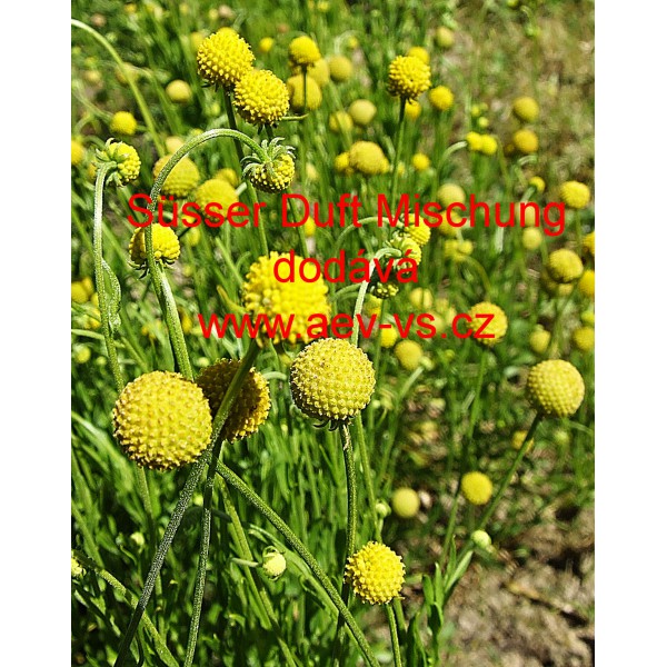 Popis: Cephalophora, záplevák vonný, jahodová tráva (Cephalophora aromatica) Süsser Duft Mischung je asi 35 centimetrů vysoká žlutá (v odstínech) jednoletá květina. Vykvétá voňavými kulovitými květy.