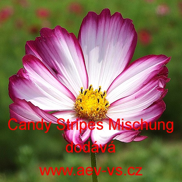 Popis: Krásenka zpeřená (Cosmos bipinnatus) Candy Stripes Mischung je asi 120 centimetrů vysoká směs žíhaných i dvoubarevných jednoletých květin. Hodí se na záhon, do truhlíku, květináče a okrasného koryta.