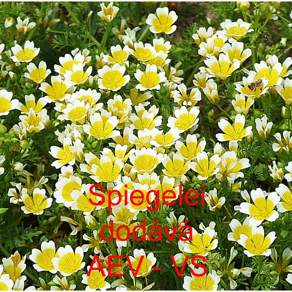 Popis: Mokřadka, zrcadlovka Douglasova, limnantes (Limnanthes douglasii) Spiegelei je asi 20 centimetrů vysoká žlutooranžová jednoletá květina s bílým lemem. V truhlíku přepadává přes okraje, je převislá. Hodí se na záhon, do truhlíku, květináče a okrasného koryta.