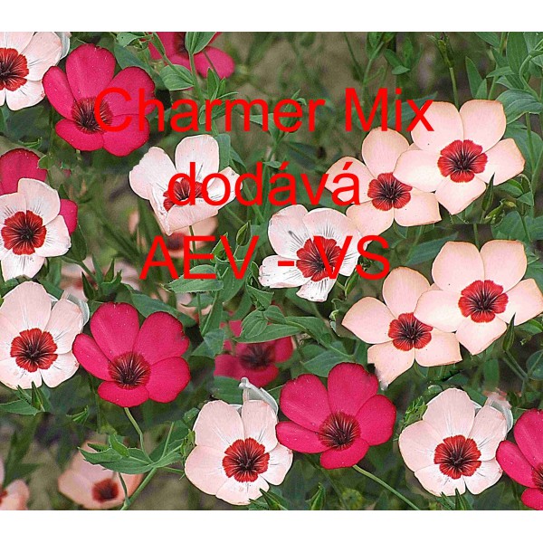 Popis: Len velkokvětý (Linum grandiflorum) Charmer Special Mix je asi 50 centimetrů vysoká velkokvětá směs (bílá a červená, v odstínech) jednoletých květin. Dá se využít i na sušení, do suchých vazeb.