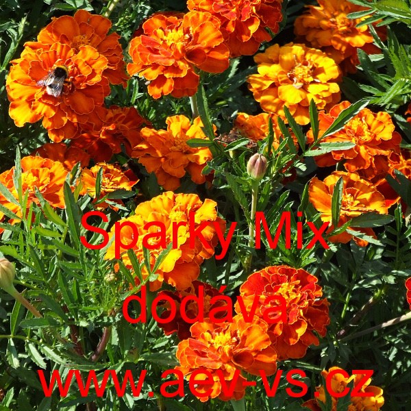 Popis: Aksamitník rozkladitý (Tagetes patula) Sparky Mix je asi 25 centimetrů vysoká plnokvětá velkokvětá směs jednoletých květin. Hodí se na záhon, do truhlíku, květináče a okrasného koryta.