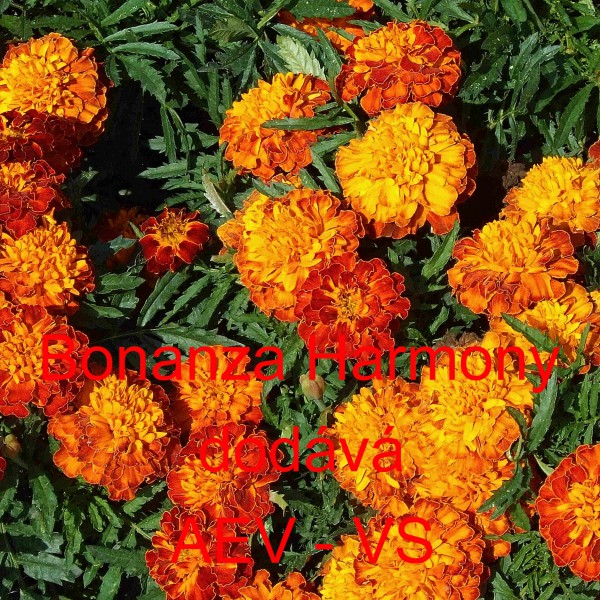 Popis: Aksamitník rozkladitý (Tagetes patula) Bonanza Harmony je asi 20 centimetrů vysoká zlatožlutá plnokvětá jednoletá květina s hnědým okrajem květu. Hodí se na záhon, do truhlíku, květináče a okrasného koryta. Semena se dodávají ve výběrové kvalitě Professional Seeds.
