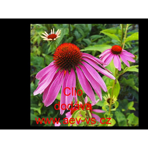 Popis: Třapatka nachová (Echinacea purpurea) Clio je asi 90 centimetrů vysoká velkokvětá červenofialová vytrvalá květina. Hodí se i k sušení, do suchých vazeb.