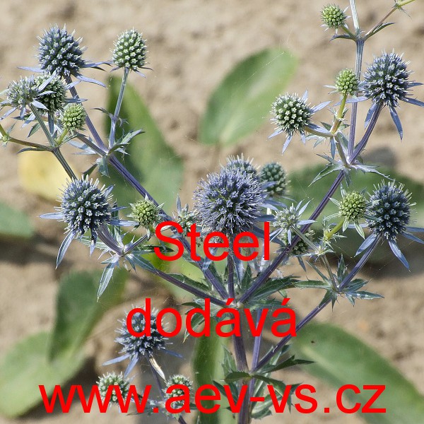 Popis: Máčka plocholistá (Eryngium planum) Steel je asi 120 centimetrů vysoká ocelově modrá vytrvalá květina. Hodí se i k sušení, do suchých vazeb. Semena se dodávají ve výběrové kvalitě Professional Seeds.