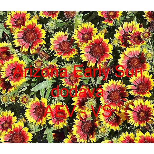 Kokarda zkřížená (Gaillardia x grandiflora) Arizona Early Sun je nízká červená (se žlutooranžovým okrajem) vytrvalá květina. Hodí se i do truhlíku. Z časného výsevu vykvétá již prvním rokem.