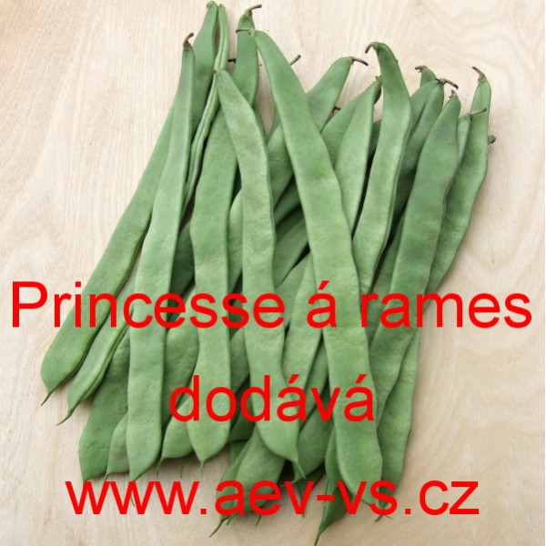 Popis: Fazol tyčkový (Phaseolus vulgaris var. vulgaris) Princesse á rames je poloraný zelenoluský tyčkový fazol, říká se mu i „turecký hrách“. Vytváří asi 12 cm dlouhé lahůdkové lusky.