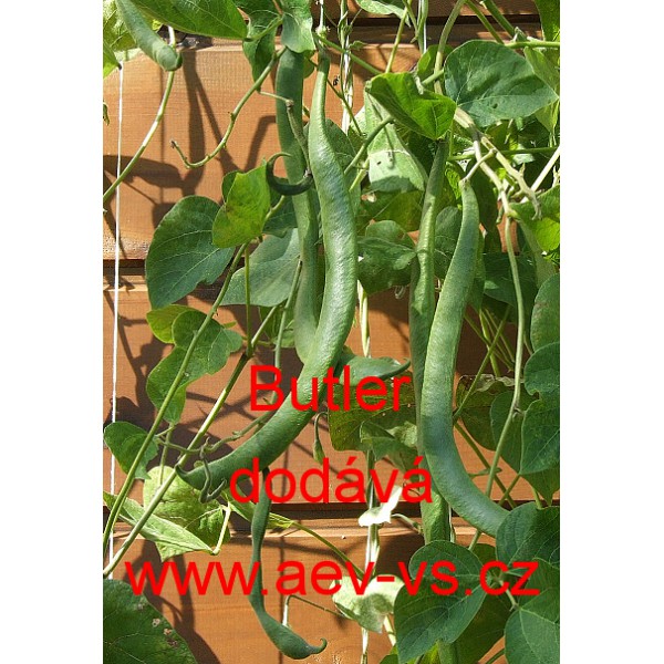 Popis: Fazol pnoucí šarlatový (Phaseolus coccineus) Butler je raný zelenoluský (až "obří") bezvláknitý pnoucí šarlatový fazol. Pne se až do výšky 500 centimetrů. Vykvétá červenými květy. Vytváří asi 40 centimetrů dlouhé šťavnaté ploché lusky a velká semena.