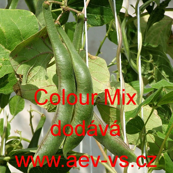 Popis: Fazol pnoucí šarlatový (Phaseolus coccineus) Colour Mix je speciální směs pnoucích šarlatových fazolů. Pne se asi až 400 cm vysoko. Vytváří až 40 centimetrů dlouhé lusky a velká semena. V kuchyni je využíváme do polévek, gulášů, k dušení, atd.