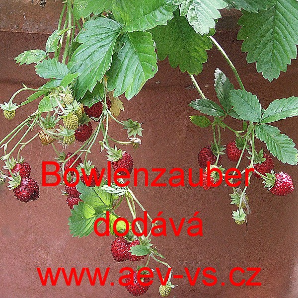 Popis: Jahodník obecný měsíční (Fragaria vesca) Bowlenzauber je červený úrodný převislý (pnoucí) stále plodící měsíční jahodník obecný. Vyšlechtěn byl speciálně do květináčů, truhlíků a závěsných nádob. Pěstovat ho můžeme i v okrasných korytech a na záhonech.