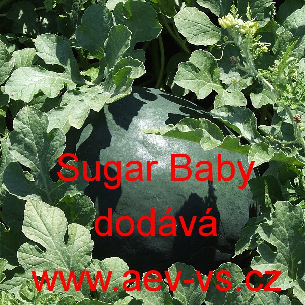 Popis: Meloun vodní červený (Citrullus lanatus) Sugar Baby je velmi raný tmavě zelený kulovitý asi 3 až 5 kilogramový vodní meloun.