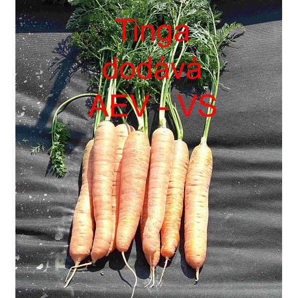 Popis: Mrkev obecná (Daucus carota ssp. Sativus) Tinga je pozdní kuželovitá asi 20 až 22 centimetrů dlouhá dobře skladovatelná mrkev obecná. Hlava kořee nezelená.