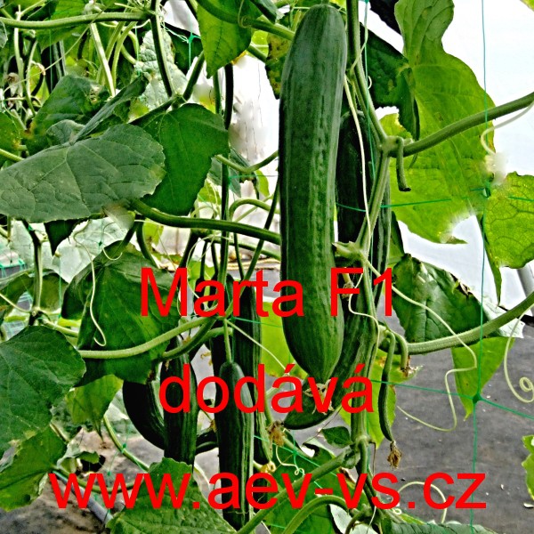 Popis: Okurka setá salátová (Cucumis sativus) Marta F1 je poloraná hladká partenokarpická tmavě zelená asi 33 centimetrů dlouhá hybridní salátová okurka setá "hadovka" do skleníku.