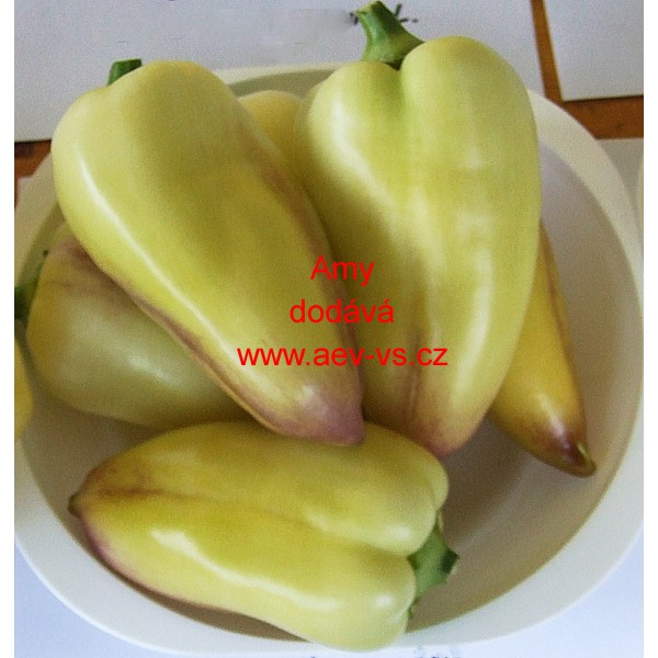 Popis: Paprika roční zeleninová (Capsicum annuum L.) Amy je raná bílozelená po dozrání zářivě červená kónická zeleninová paprika roční do skleníku i na záhon.