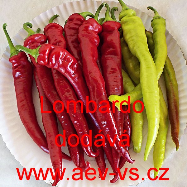 Popis: Paprika roční zeleninová (Capsicum annuum L.) Lombardo je velmi raná sladká červená zeleninová paprika roční. Je to asi 15x3 centimetrů velká sladká "feferonka" do skleníku, fóliovníku i na záhon.
