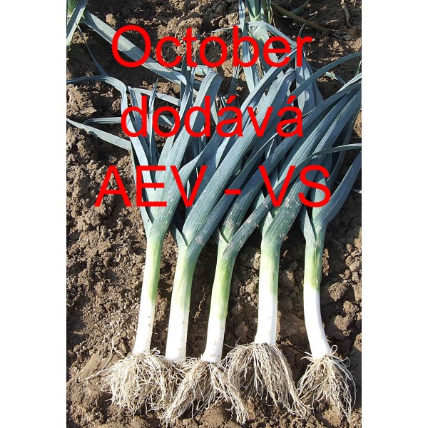 Popis: Pór zahradní (Allium porrum L.) October je tmavě modrozelený pór zahradní vyšlechtěný pro pozdně letní až podzimní pěstování. Délka vybělené konzumní části je asi 30-35 centimetrů. Vyznačuje se malým rozšířením cibule.