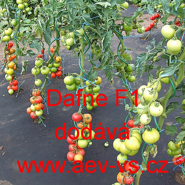 Rajče tyčkové (Lycopersicon esculentum Mill.) Dafne F1 je polorané nepraskavé červené pevné LSL až zploštělé asi 125-140 gramové tyčkové hybridní rajče do skleníku, fóliovníku a na záhon. Odolává chorobám rajčat.