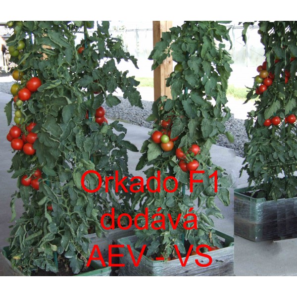 Rajče tyčkové (Lycopersicon esculentum Mill.) Orkado F1 je rané/polorané nepraskavé červené tyčkové asi 130-145 gramové hybridní rajče pro studené rychlení i na záhon.