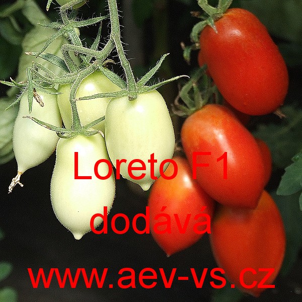 Rajče tyčkové (Solanum lycopersicum) Loreto F1 je rané pevné LSL chorobám odolné asi 70 až 90 gramové červené oválné tyčkové hybridní rajče do skleníku, fóliovníku i na záhon.