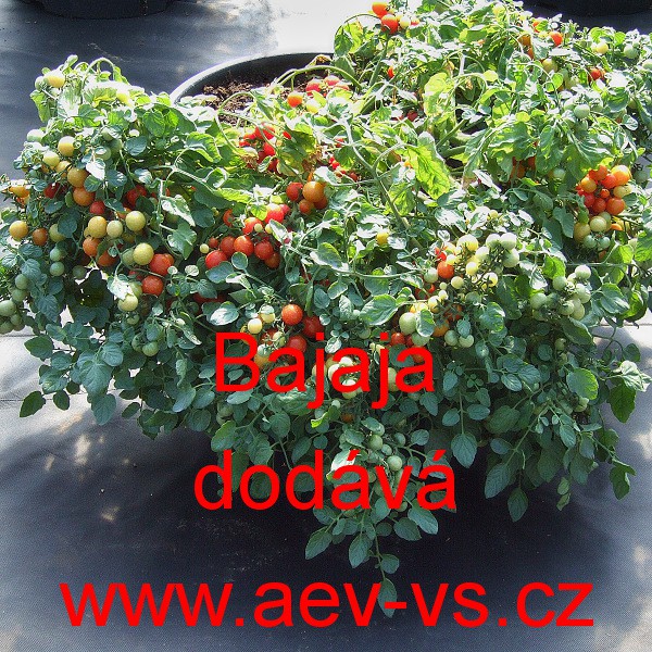 Rajče balkonové (Lycopersicon lycopersicum) Bajaja je velmi rané červené "převislé" nepraskavé keříčkové rajče do truhlíku, květináče a okrasného koryta na balkon. Na rostlině se postupně vytvoří až asi 650 až 750 kusů neopadávajících asi 8 -10 gramových kulatých červených plodů. Odolává chorobám rajčat.