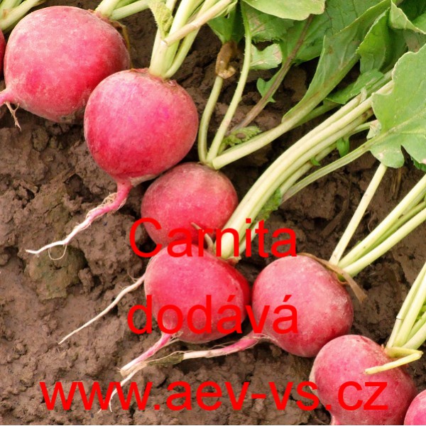 Popis: Ředkvička (Raphanus sativus var. sativus) Carnita je červená kulatá "celoroční" ředkvička.