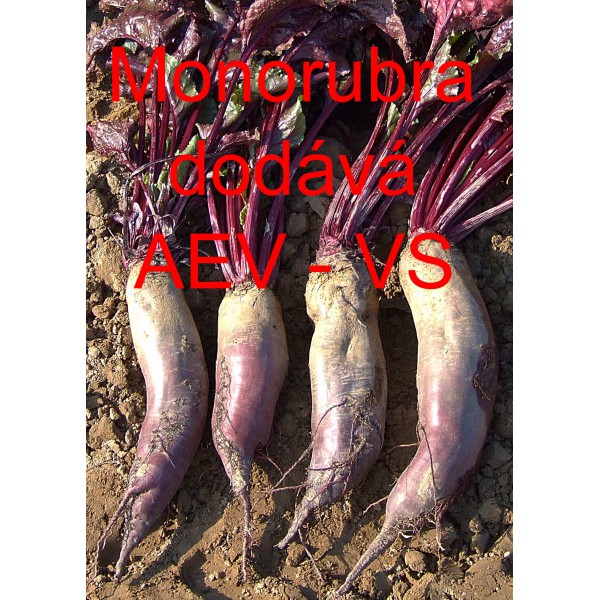Popis: Řepa červená salátová (Beta vulgaris var. esculenta) Monorubra je polopozdní válcovitá jednoklíčková červená salátová řepa.
