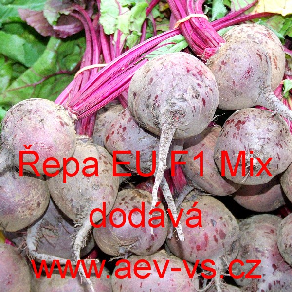 Popis: Řepa červená salátová (Beta vulgaris var. esculenta) EU F1 Mix je speciální směs zahraničních hybridních červených kulatých a válcovitých salátových řep vhodných i pro postupnou sklizeň.