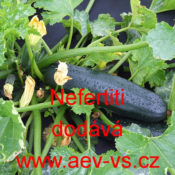 Popis: Tykev obecná cuketa (Cucurbita pepo L.) Nefertiti je keříčkovitá tmavě zelená středně dlouhá až dlouhá lesklá tykev obecná cuketa na záhon. Netrpí skvrnitostí.
