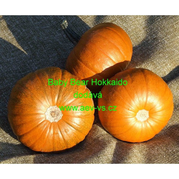 Tykev obecná (Cucurbita pepo) Baby Bear Hokkaido je oranžová asi 1 kilogram těžká, kulatá v průměru asi 12-15 centimetrová výborná „léčivá“ tykev velkoplodá typu Hokkaido. Je výborná i pro zdravou výživu.