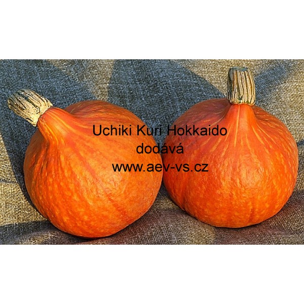 Popis: Tykev velkoplodá (Cucurbita maxima Duchesne) Uchiki Kuri Hokkaido je oranžová výborná asi 1,5 kilogramů těžká „léčivá“ tykev velkoplodá typu Hokkaido. Vytváří výborné plody tvaru cibule s měkkou slupkou. Chutí připomíná jedlé kaštany.