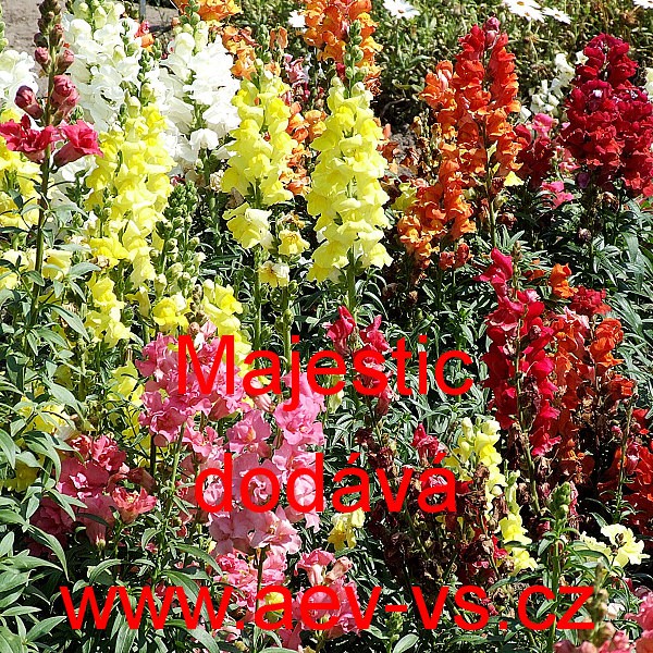 Popis: Hledík větší (Antirrhinum majus nanum) Majestic je asi 50 centimetrů vysoká lososově růžová jednoletá květina.
