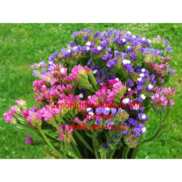 Popis: Limonka chobotnatá statice (Limonium sinuatum) Mix je asi 60 centimetrů vysoká směs jednoletých květin. Dá se využít i na sušení, do suchých vazeb.