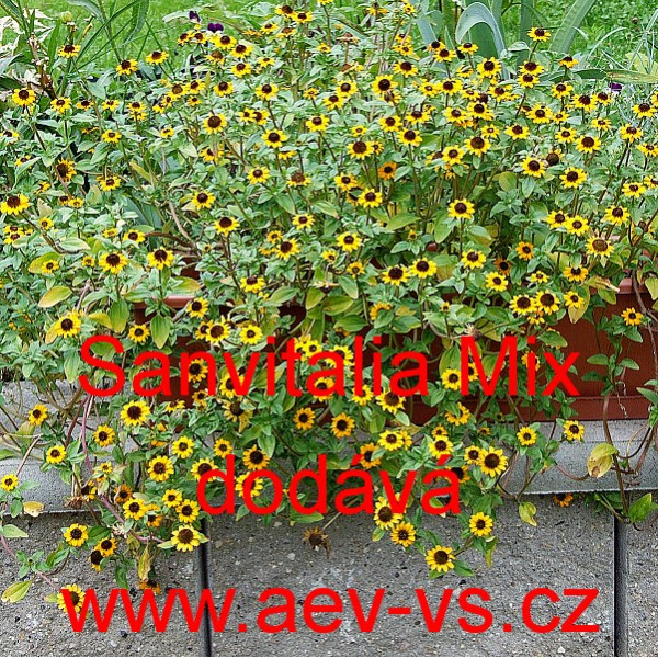 Vitálka položená, poléhavá, plazivá (Sanvitalia procumbens) Mix je směs nízkých plazivých jednoletých květin.